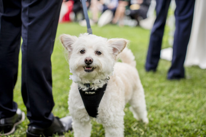 They say that rain is good luck on your wedding day, so this couple was very lucky! The couple took the rainy weather in stride; umbrellas were handed out for guests and a clear canopy created a dry area for the “I do’s.” Perhaps our favorite details was the couple’s adorable pooch who served as ring bearer.