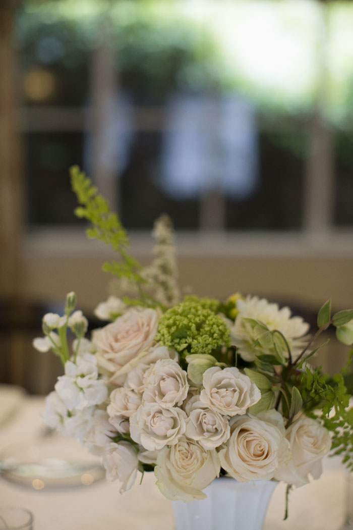 Dinner was held at one long table and decorated with elegant blush flowers in milk glass vases. In between, tall candelabras gave height and elegance to the table. Afterwards, guests were treated to a serious dance party courtesy of Dart DJ.