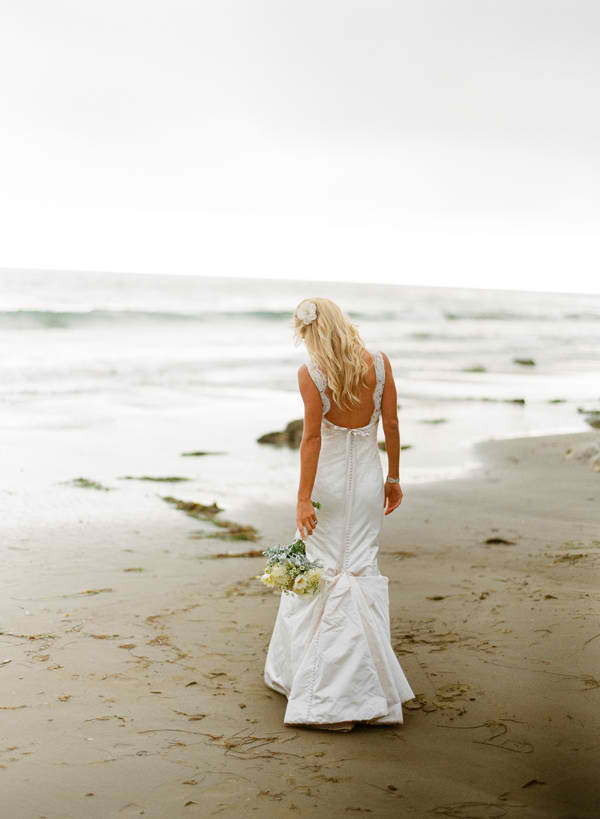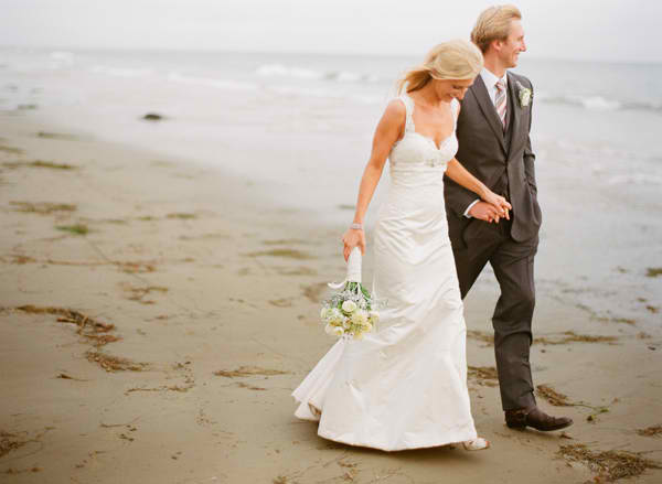 Bride and Groom take a stroll on the beach enjoying their unbelievable wedding location.