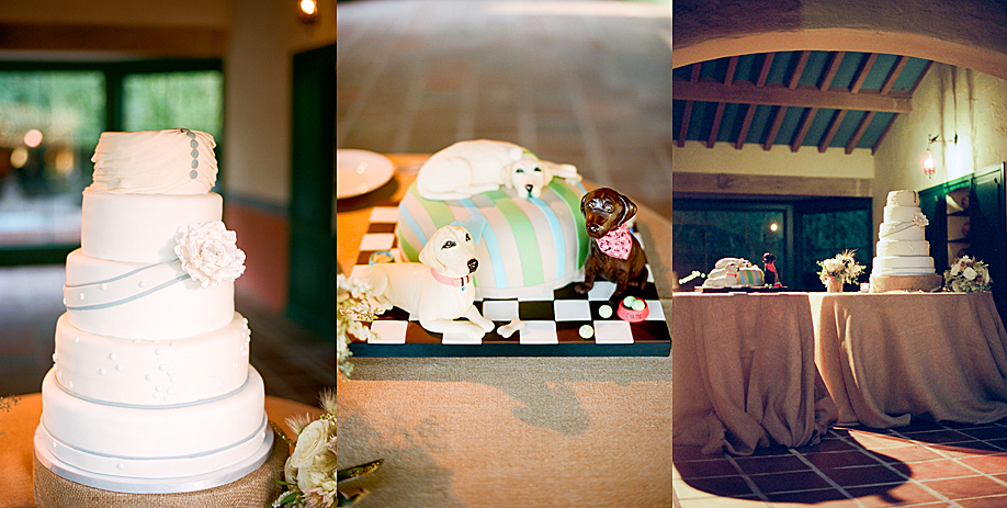 The elegant wedding cake paired with the adorable groom’s cake (featuring his three pet labradors) really highlighted Teri and Rand’s personalities!